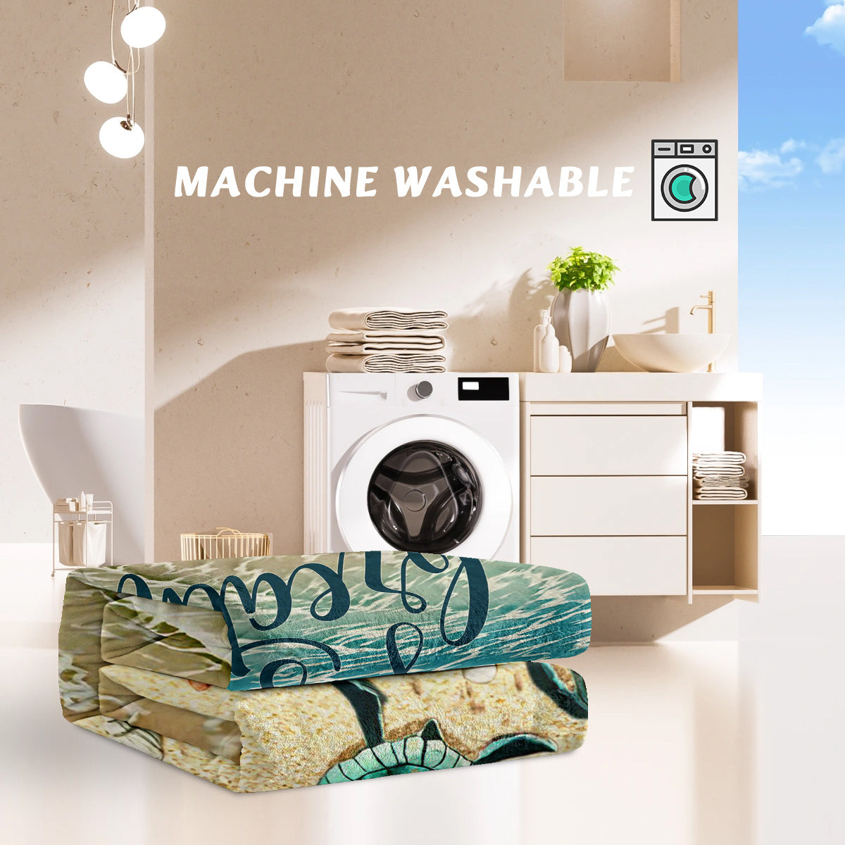 Tropical Baby Sea Turtle Flannel Fleece Blanket - 3D Ocean Waves Soft Plush Throw